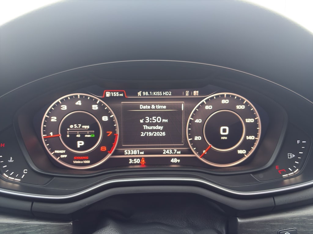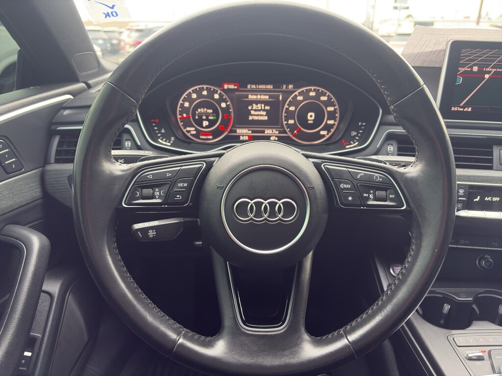 This model keeps you comfortable with Auto Climate. The leather seats in the Audi A5 are a must for buyers looking for comfort, durability, and style. Apple CarPlay: Seamless smartphone integration for this vehicle - stay connected and entertained on the go! Protect this unit from unwanted accidents with a cutting edge backup camera system. This Audi A5 offers Android Auto for seamless smartphone integration. The Audi A5 is equipped with the latest generation of XM/Sirius Radio. The state of the art park assist system will guide you easily into any spot. The installed navigation system will keep you on the right path. This model features a hands-free Bluetooth phone system. Conquer any rainy, snowy, or icy road conditions this winter with the all wheel drive system on the vehicle. This unit has a 4 Cyl, 2.0L high output engine. Set the temperature exactly where you are most comfortable in it. The fan speed and temperature will automatically adjust to maintain your preferred zone climate.