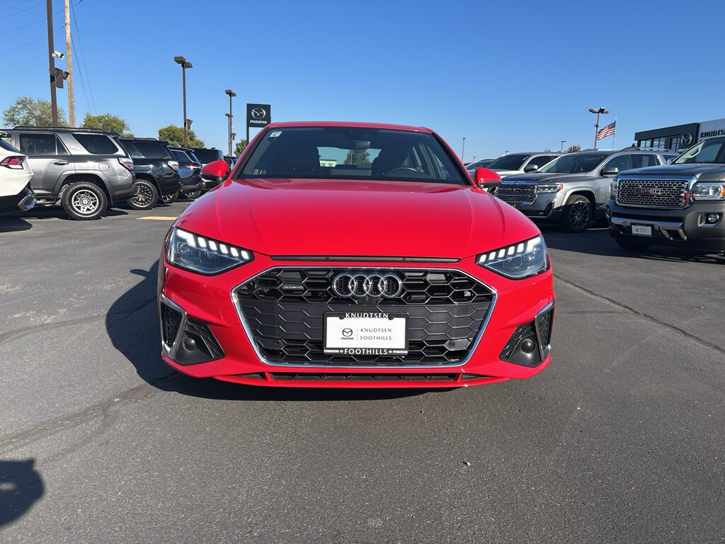 This vehicle is a certified CARFAX 1-owner. It offers Apple CarPlay for seamless connectivity. The state of the art park assist system will guide you easily into any spot. This small car offers Android Auto for seamless smartphone integration. This model offers Automatic Climate Control for personalized comfort. Bluetooth technology is built into the Audi A4, keeping your hands on the steering wheel and your focus on the road. See what's behind you with the back up camera on the vehicle. The leather seats in it are a must for buyers looking for comfort, durability, and style. Keep your hands warm all winter with a heated steering wheel in this 2023 Audi A4 . This small car has a clean CARFAX vehicle history report. This 2023 Audi A4 is equipped with all wheel drive. This unit gleams with a flashy red exterior. Set the temperature exactly where you are most comfortable in this vehicle. The fan speed and temperature will automatically adjust to maintain your preferred zone climate.