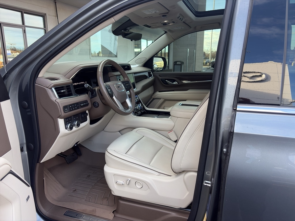 Max Trailering Package: Extra Capacity Cooling System. Denali Premium Package. ProGrade Trailering System: Trailer Side Blind Zone Alert; Smart Trailer Integration Indicator; Integrated Trailer Brake Controller; Hitch Guidance with Hitch View. Advanced Technology Package: Reverse Automatic Braking; Rear Camera Mirror Washer; Enhanced Automatic Emergency Braking; Inside Rearview Auo-Dimming Rear Camera Mirror; Adaptive Cruise Control. Advanced Security Package: Theft-Deterrent Alarm System; Vehicle Interior Movement Sensor; Vehicle Inclination Sensor; Glass Breakage Sensor. Preferred Equipment Group 5SA: Bright Front and Rear Door Sill Plates; 2 Presets For Outside Rearview Mirrors; Stop/start System Disable Button; 3rd Row 60/40 Power-Folding Split-Bench Seat; Safety Alert Seat; Chrome Door Handles with Body-Color Strip; Hill Descent Control; 6.2L EcoTec3 V8 Engine; Heated Steering Wheel; Heated Driver and Front Passenger Seats; Wireless Charging; Universal Home Remote; Heated 2nd Row Outboard Position Seats; 3 Years of GMC Connected Services; Hands-Free Power Programmable Rear Liftgate; 2-Speed Electronic Autotrac Active Transfer Case; Floor Console; Dual Exhaust System; GMC Pro Safety Plus; HD Surround Vision; Heated and Ventilated Driver and Front Passenger Seats; Power Tilt and Telescopic Steering Column; 15 Diagonal Multi-Color Head-Up Display; Rear Pedestrian Alert; Magnetic Ride Control Suspension; Inside Rearview Auto-Dimming Mirror; Automatic Stop/start; Power Release 2nd Row Bucket Seats; Outside Heated Power-Adjustable Mirrors; Galvano Bodyside Moldings. 22 Multi-Spoke Gloss Black Wheels. Power-Retractable Assist Steps. Dual-Pane Panoramic Power Sunroof. Satin Steel Metallic. Satin Steel Metallic. **Equipment listed is based on original vehicle build and subject to change. Please confirm the accuracy of the included equipment by calling the dealer prior to purchase.**
