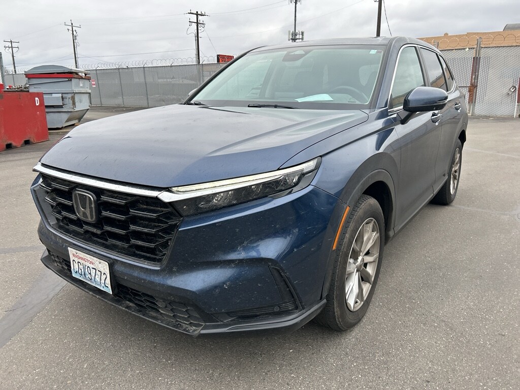 The leather seats in the vehicle are a must for buyers looking for comfort, durability, and style. It offers Automatic Climate Control for personalized comfort. This 2023 Honda CR-V has only one previous owner, verified by AutoCheck. It has a clean AutoCheck report. Start this small suv from inside with remote start. The Honda CR-V offers Android Auto for seamless smartphone integration. This unit features a hands-free Bluetooth phone system. Apple CarPlay: Seamless smartphone integration for this Honda CR-V - stay connected and entertained on the go! See what's behind you with the back up camera on it. The rear parking assist technology on this small suv will put you at ease when reversing. The system alerts you as you get closer to an obstruction. This model has auto-adjust speed for safe following. The Honda CR-V's Forward Collision Warning feature alerts drivers to potential front-end collisions. This model shines with an exquisite blue finish.