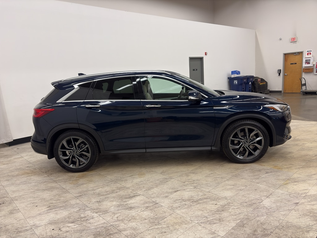 It has a clean CARFAX vehicle history report. This unit is pure luxury with a heated steering wheel. This mid-size suv features a hands-free Bluetooth phone system. The installed navigation system will keep you on the right path. Start this 2021 INFINITI QX50 from inside with remote start. See what's behind you with the back up camera on the vehicle. with XM/Sirus Satellite Radio you are no longer restricted by poor quality local radio stations while driving this 2021 INFINITI QX50 . Anywhere on the planet, you will have hundreds of digital stations to choose from. Apple CarPlay: Seamless smartphone integration for the INFINITI QX50 - stay connected and entertained on the go! This mid-size suv comes equipped with Android Auto for seamless smartphone integration on the road. The leather seats in the INFINITI QX50 are a must for buyers looking for comfort, durability, and style. This INFINITI QX50's Forward Collision Warning feature alerts drivers to potential front-end collisions.