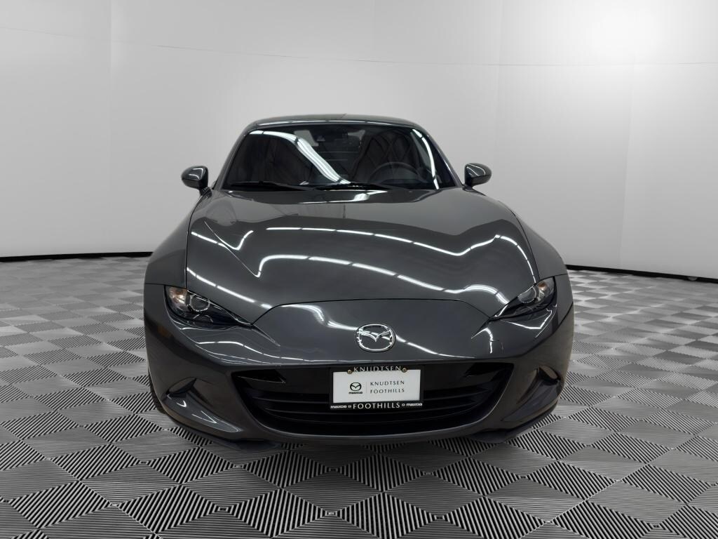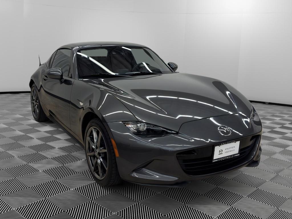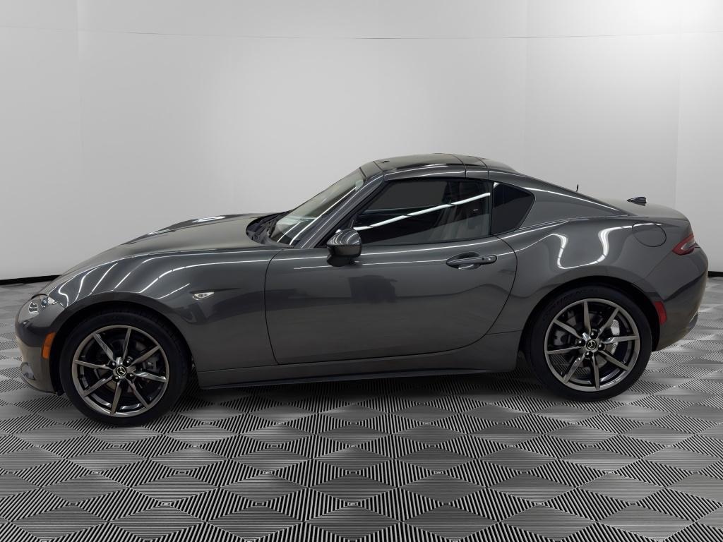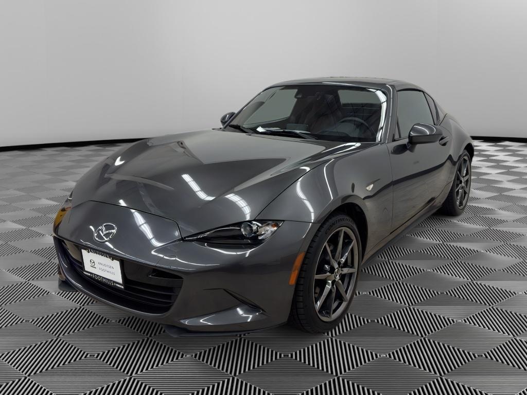 You'll never again be lost in a crowded city or a country region with the navigation system on it. This small car's blind spot monitor enhances safety. This small car's Lane Departure Warning keeps you safe by alerting you when you drift from your lane. The Mazda MX-5 Miata RF offers Automatic Climate Control for personalized comfort. The leather seats in this unit are a must for buyers looking for comfort, durability, and style. Bluetooth technology is built into the vehicle, keeping your hands on the steering wheel and your focus on the road. This small car features a high end BOSE stereo system. Enjoy the incredible handling with the rear wheel drive on the Mazda MX-5 Miata RF. With the keyless entry system on it you can pop the trunk without dropping your bags from the store. The vehicle has a 4 Cyl, 2.0L high output engine. The Mazda MX-5 Miata RF emanates grace with its stylish gray exterior.