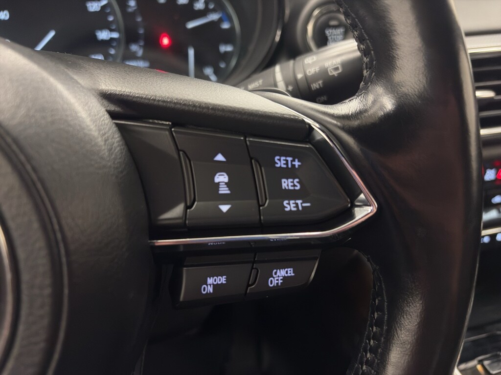 See what's behind you with the back up camera on this 1/2 ton suv. This Mazda CX-9 features a high end BOSE stereo system. This 2021 Mazda CX-9 is equipped with the latest generation of XM/Sirius Radio. The vehicle enhances safety with a blind spot monitor, alerting drivers to potential dangers in adjacent lanes. This 2021 Mazda CX-9 's Lane Departure Warning helps keep you in your lane. Good News! This certified CARFAX 1-owner vehicle has only had one owner before you. You'll never again be lost in a crowded city or a country region with the navigation system on this 2021 Mazda CX-9 . The Mazda CX-9 is pure luxury with a heated steering wheel. Never get into a cold vehicle again with the remote start feature on this vehicle. This vehicle features a hands-free Bluetooth phone system. The leather seats in the Mazda CX-9 are a must for buyers looking for comfort, durability, and style.