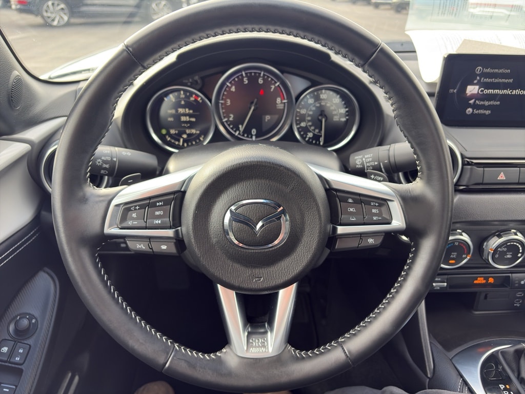 This unit is equipped with the latest generation of XM/Sirius Radio. This model's blind spot monitor enhances safety. This Mazda MX-5 Miata RF features a hands-free Bluetooth phone system. This small car has a clean AutoCheck report, ensuring its impeccable vehicle history. This 2024 Mazda MX-5 Miata RF 's Lane Departure Warning helps keep you in your lane. The installed navigation system will keep you on the right path. Protect the vehicle from unwanted accidents with a cutting edge backup camera system. The vehicle keeps you comfortable with Auto Climate. Apple CarPlay: Seamless smartphone integration for this unit - stay connected and entertained on the go! This unit's AutoCheck: 1 owner, assurance of single-owner history for peace of mind. This Mazda MX-5 Miata RF comes equipped with Android Auto for seamless smartphone integration on the road. The leather seats in this small car are a must for buyers looking for comfort, durability, and style.