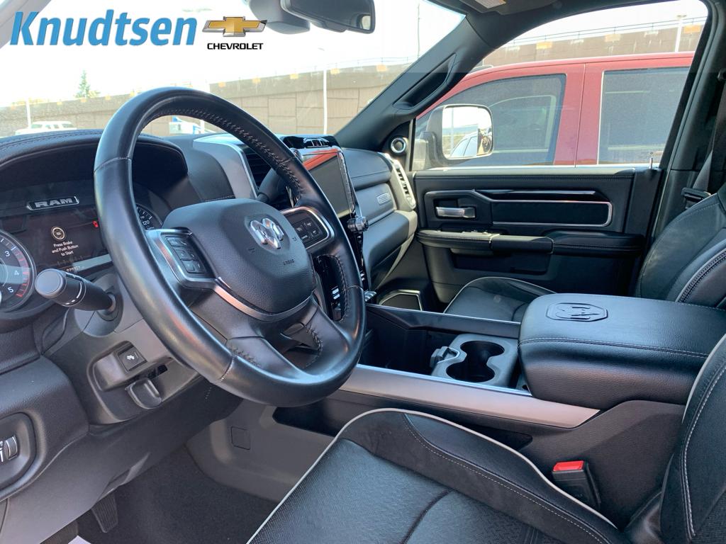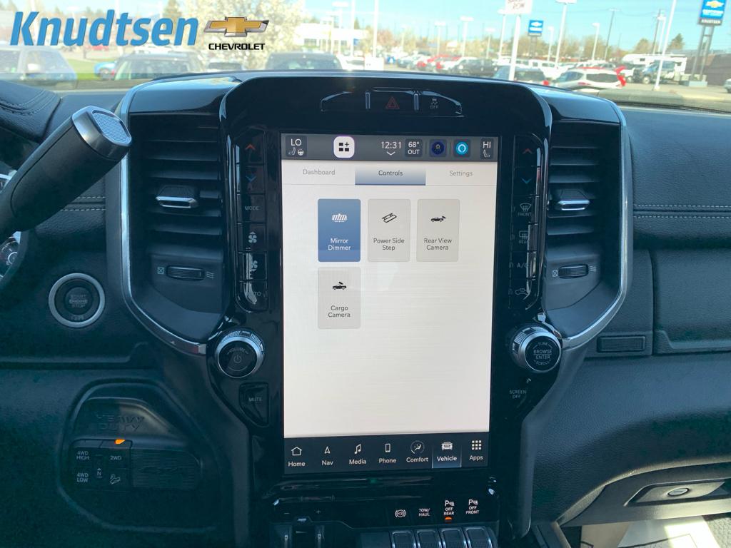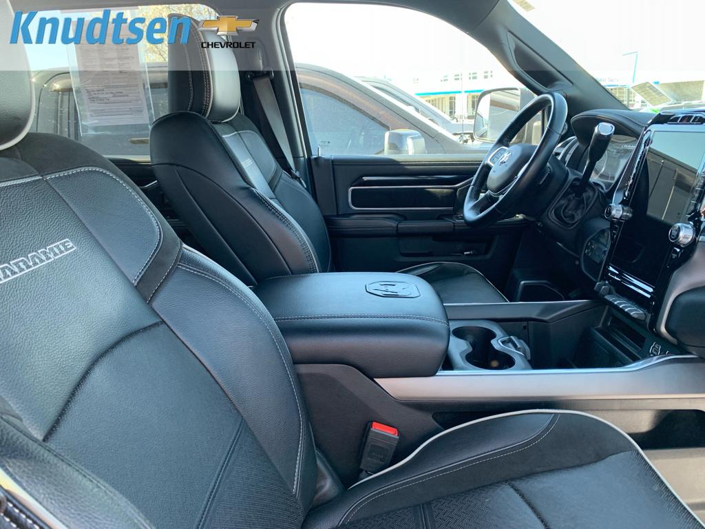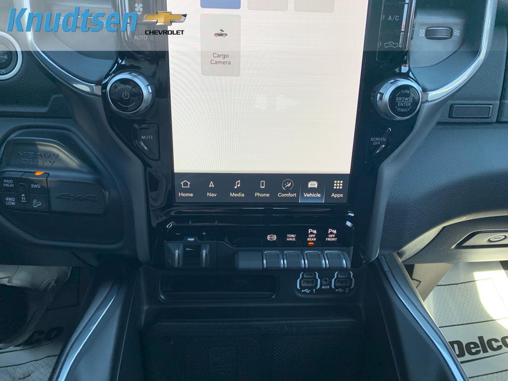 Cold Weather Group: Engine Block Heater; MOPAR Winter Front Grille Cover. Quick Order Package 2HH Laramie. Laramie Level B Equipment Group: Mirror-Mounted Aux Reverse Lamps; Rain Sensitive Windshield Wipers; Power Adjustable Pedals with Memory; Ramcharger Wireless Charging Pad; Exterior Mirrors with Supplemental Signals; Power Chrome Tow Mirrors with Convex Spotter and Memory; Exterior Mirrors Courtesy Lamps; Trailer Tow Mirrors; Remote Tailgate Release; 17 Speaker Harman Kardon Premium Sound; Exterior Mirrors with Heating Element; Auto High Beam Headlamp Control; Chrome Exterior Mirrors; Exterior Mirrors with Memory; Heated Second Row Seats; Mirror Running Lights; Power Folding Mirrors; Foam Bottle Insert (door Trim Panel); 2nd Row in Floor Storage Bins; Radio/driver Seat/mirrors/pedals Memory; Power Adjustable Convex Aux Mirrors. Night Edition: Mirror-Mounted Aux Reverse Lamps; Black Ram Head Tailgate Badge; 20 X 8.0 Black Painted Aluminum Wheels; Exterior Mirrors with Supplemental Signals; Black Headlamp Bezels; Body Color Door Handles; Exterior Mirrors Courtesy Lamps; Painted Front Bumper; Painted Rear Bumper; Trailer Tow Mirrors; Exterior Mirrors with Heating Element; LT285/60R20E OWL On/off Road Tires; Black Exterior Truck Badging; Exterior Mirrors with Memory; Gloss Black Grille Billets/accents; Mirror Running Lights; Body Color Grille Surround; Black Interior Accents; Power Folding Mirrors; Black Exterior Mirrors; Black Tail Lamp Bezels; Power Black Tow Mirrors with Convex Spotter and Memory; Power Adjustable Convex Aux Mirrors. Off Road Package: Front Performance Tuned Shock Absorbers; Tow Hooks; Off Road Decal; Transfer Case Skid Plate Shield; Hill Descent Control; Rear Performance Tuned Shock Absorbers. Uconnect 5 Navigation with 12.0 Display Radio. Power Deployable Running Boards. Leather Trimmed Bucket Seats. Anti-Spin Differential Rear Axle. Center Stop Lamp with Cargo View Camera. Granite Crystal Met CC. Granite Crystal Met CC. Tow Hooks. **Equipment listed is based on original vehicle build and subject to change. Please confirm the accuracy of the included equipment by calling the dealer prior to purchase.**