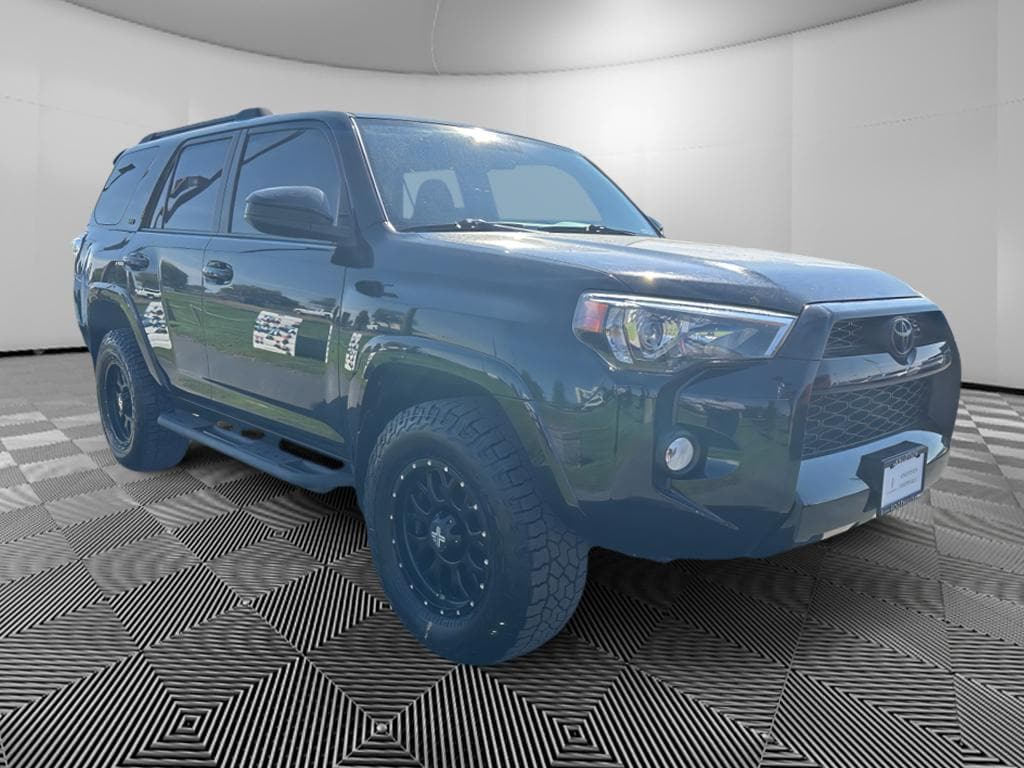 Bluetooth technology is built into this 2017 Toyota 4Runner , keeping your hands on the steering wheel and your focus on the road. Protect this vehicle from unwanted accidents with a cutting edge backup camera system. Set the temperature exactly where you are most comfortable in this vehicle. The fan speed and temperature will automatically adjust to maintain your preferred zone climate. Make room for more passengers, carry extra luggage or your favorite sports gear with the roof rack on this mid-size suv. This vehicle is painted with a sleek and sophisticated black color. When you encounter slick or muddy roads, you can engage the four wheel drive on it and drive with confidence. This 2017 Toyota 4Runner has a V6, 4.0L high output engine. The fog lights cut through the weather so you can see what's ahead. The Electronic Stability Control will keep you on your intended path. Help alleviate lower back pain with the driver seat lumbar support in this mid-size suv.